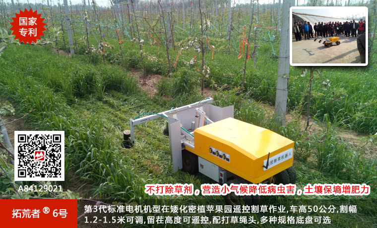 拓荒者6号国内更先进的果园遥控割草机第三代,在生态果园割杂草 |